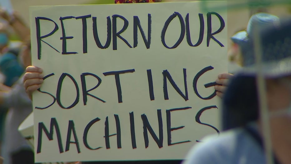 "We need things restored," said Caren Gallagher. "We need more support during a pandemic and probably the largest mail-in voting the country has seen. Not less.”
