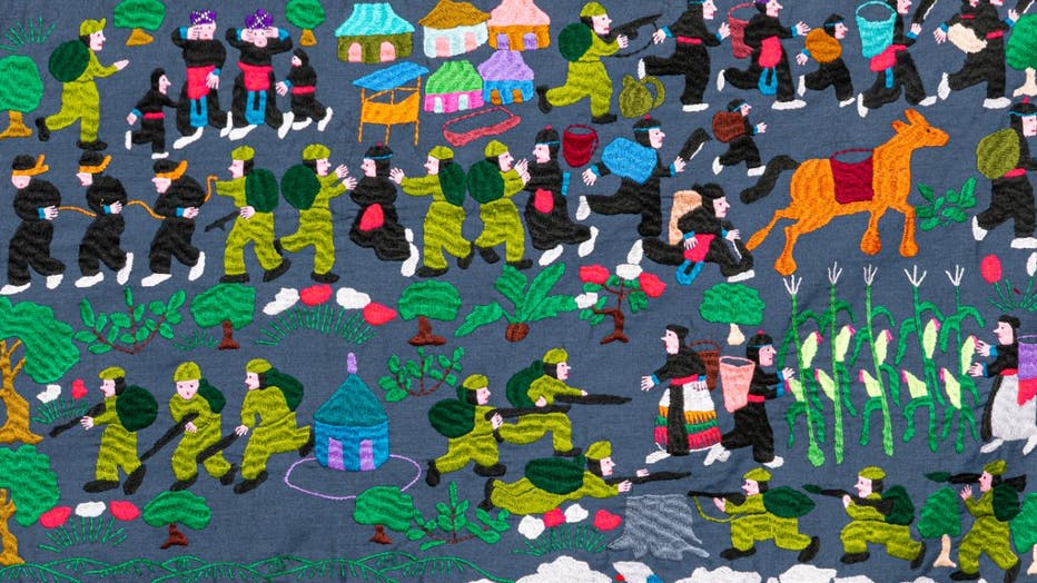MINNEAPOLIS (FOX 9) - Story cloths are one of several types of Hmong needlework and fabric arts known as paj ntaub, or "flower cloth." It’s an art form that’s been a part of the Hmong culture for centuries.