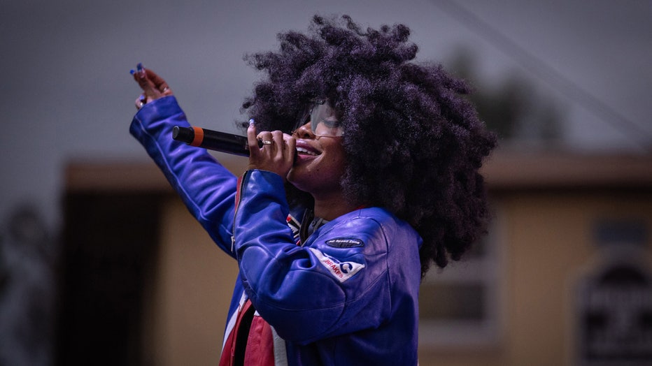 SZA performs at Top Dawg Entertainment's (TDE) 10th annual toy drive and concert featuring Jay Rock, YG and other TDE artists in the Nickerson Gardens housing projects on Tuesday, Dec. 19, 2023 in Los Angeles, CA. (Jason Armond / Los Angeles Times vi