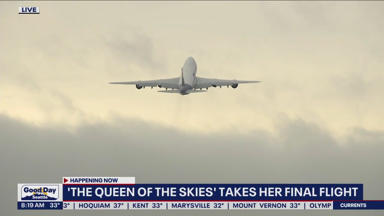 'The Queen of the Skies', Boeing's last 747 takes her final flight in front of a group of aviation fans.