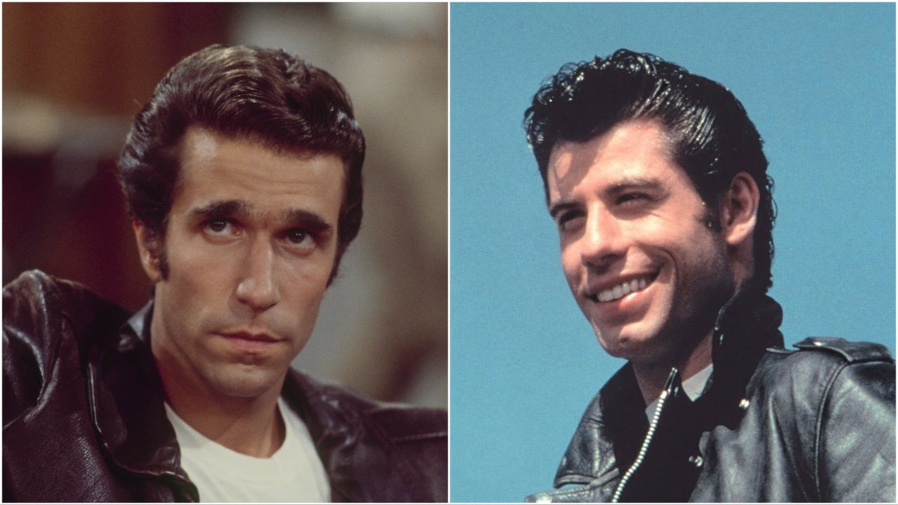 LEFT: Henry Winkler "Fonzie Loves Pinky" which aired on September 21, 1976. (Photo by ABC Photo Archives/Disney General Entertainment Content via Getty Images) RIGHT: John Travolta in movie Grease (Credit: (Photo by Paramount Pictures/Sunset Boulevar