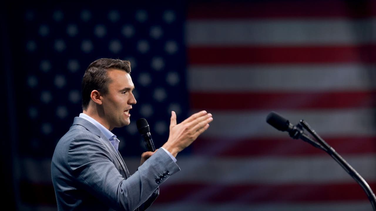 Charlie Kirk, who founded Turning Point USA, speaks before former President Donald Trump's arrival during a Turning Point USA Believers Summit conference at the Palm Beach Convention Center on July 26, 2024 in West Palm Beach, Florida. Trump had earl
