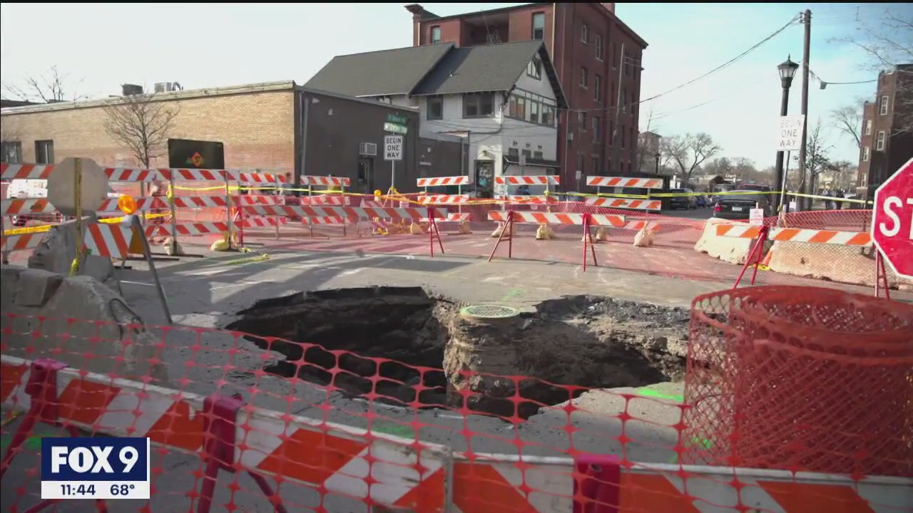 MINNEAPOLIS (FOX 9) - At the corner of 27th and Girard in South Minneapolis, a fence now surrounds what was once an infamous neighborhood attraction. But three months after a sinkhole opened up in the middle of the intersection, some neighbors wonder why repairs are taking so long.