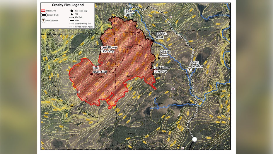 A map of the Crosby wildfire. Photo courtesy of the Minnesota Incident Command System. (Supplied)