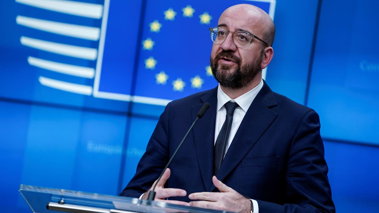 EU President of Council Charles Michel speaks during a joint press conference after a G7 Leaders' videoconference on COVID-19 at the EU headquarters in Brussels on March 16, 2020. (Photo by KENZO TRIBOUILLARD/AFP via Getty Images)