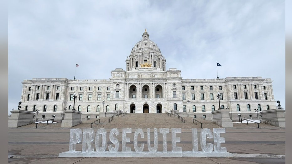 The sculpture was unveiled Thursday by the activist group Common Defense, Minnesota Rep. Jamie Long and other community leaders. The group says they are "demanding justice and urging state-level actions to hold ICE and other rogue federal officials accountable amidst ongoing ICE raids."