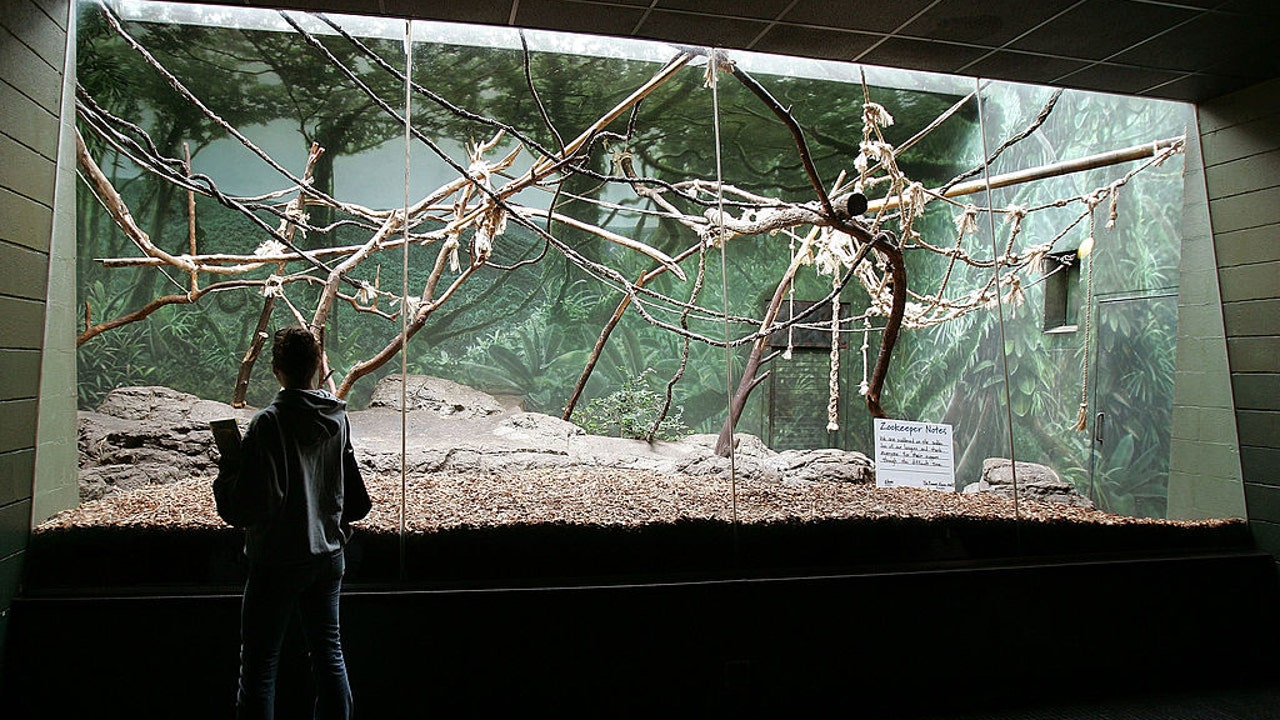 FILE-A visitor looks into an empty animal cage at a zoo. (Photo by Tim Boyle/Getty Images)