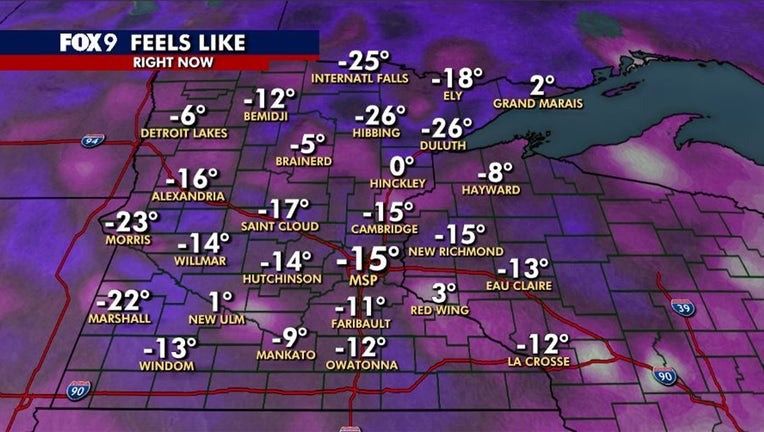 Feels-like temperatures across Minnesota. (FOX 9)