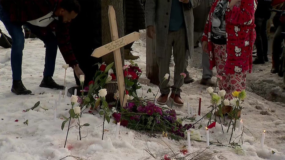 Photo shows a makeshift memorial for the woman fatally shot by an ICE agent in Minneapolis. (FOX 9)