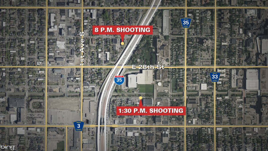Two shootings in Minneapolis hours apart and about a mile apart left two people dead and several people injured.