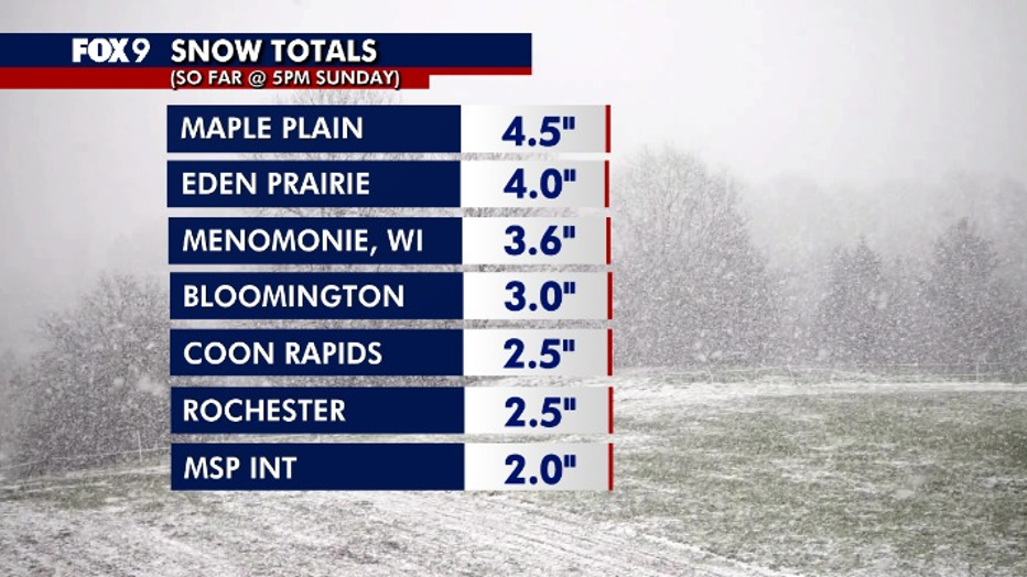 FOX 9 Meteorologist Sean Macaday says conditions will continue to worsen in south/central Minnesota, as a developing band of snow will procure blizzard conditions into Sunday night. Snowfall reports are coming in slow with the wind making it a challenge. Most Twin Cities communities can expect another 2-4" on top of what has fallen.