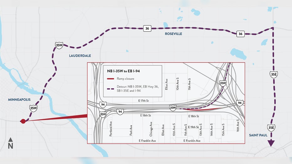 All lanes will then reopen on Monday, Aug. 18, and remain open until Labor Day in order to alleviate traffic congestion during the Minnesota State Fair, except for the ramp from Huron Boulevard to eastbound I-94, which reopens on Aug. 20.