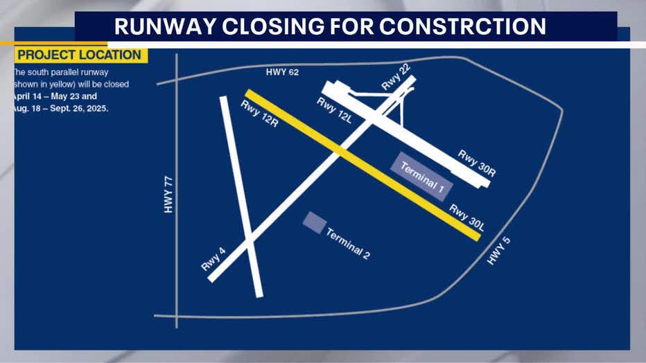 Most of the construction is happening near the eastern end of the runway, close to Highway 5. Airport officials say the temporary runway closures could affect flight patterns, meaning nearby residents may notice a change in airport noise in certain neighborhoods.