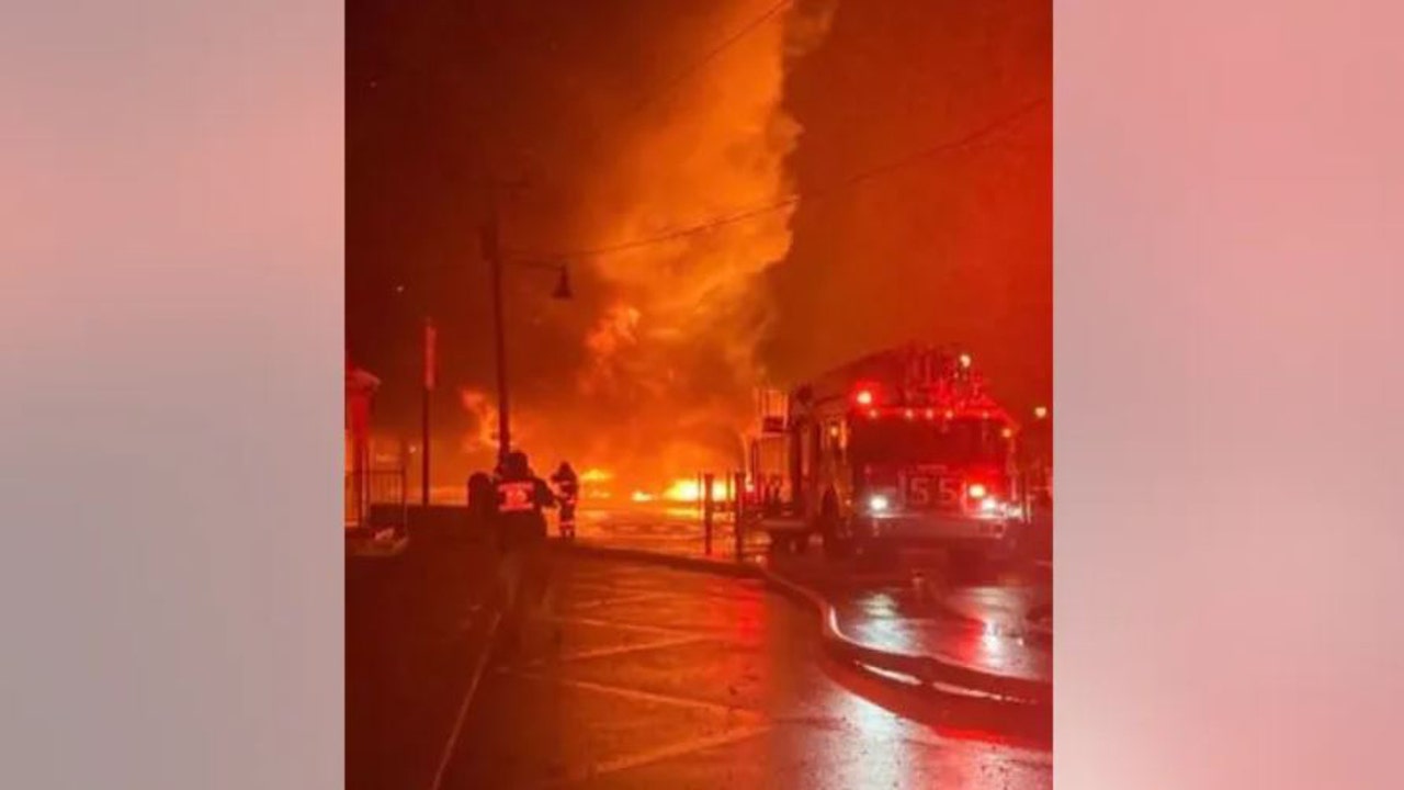 The fire that erupted at Seaport Marine on Washington Street around 9 p.m. reportedly destroyed at least two buildings and prompted a response from several fire departments in the region.