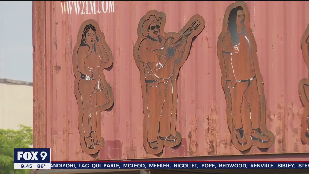MINNEAPOLIS (FOX 9) - At the corner of 27th Avenue South and East Lake Street in south Minneapolis, an old shipping container sits a dozen feet above a vacant lot. But the steel structure is really a piece of public art.