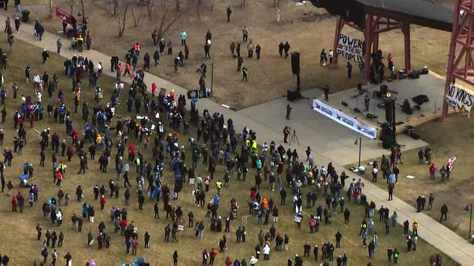 11:40 a.m. – Crowds are gathering at multiple parks in St. Paul before plans to march on the Minnesota State Capitol.