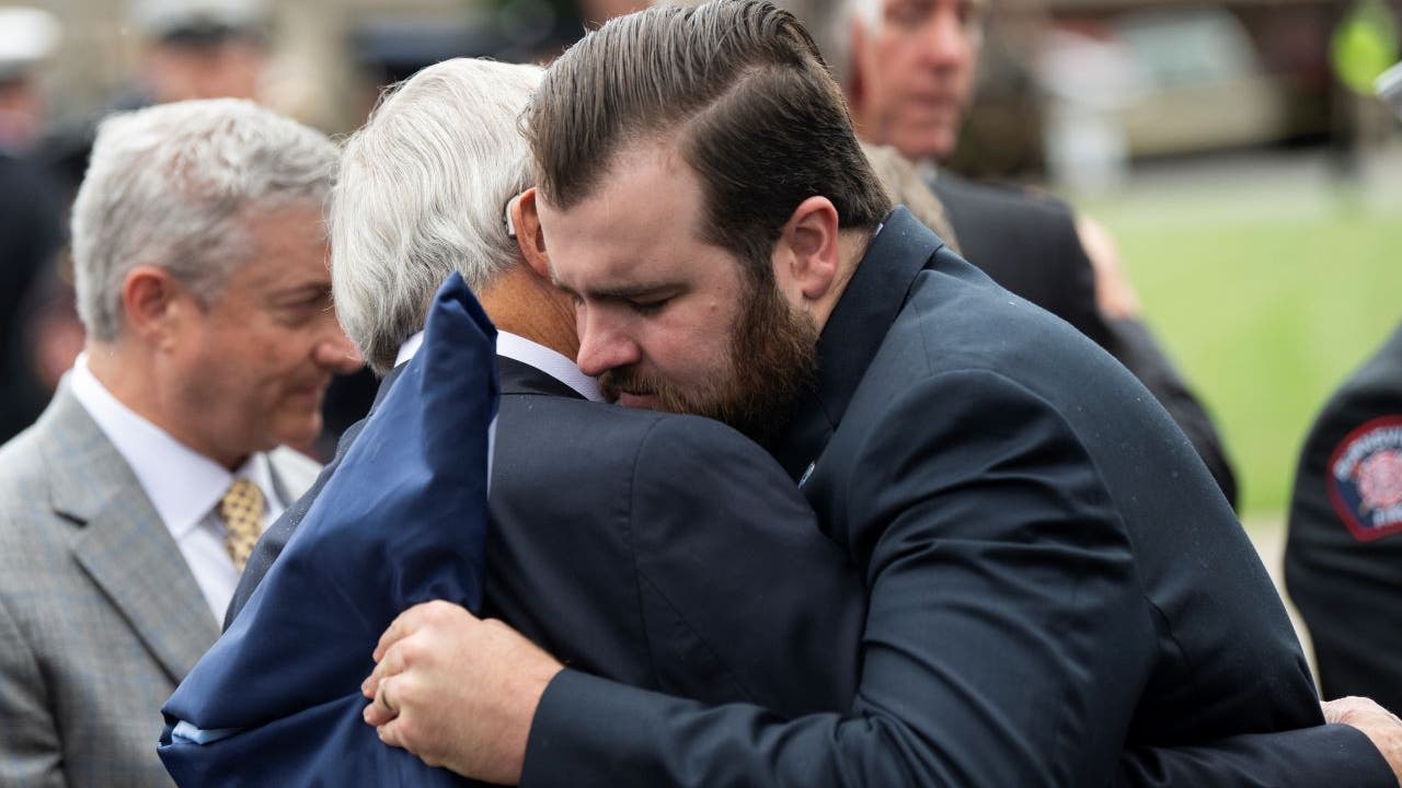 Colin Hortman sat in the Senate gallery with his wife Tuesday and got a hug from Senator John Hoffman, who was also shot during a gunman’s rampage targeting Democrats.