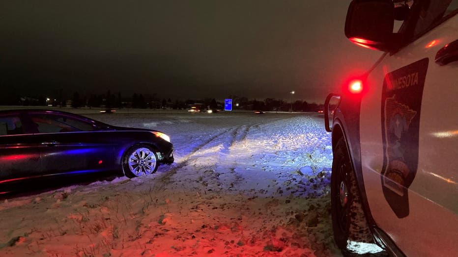 The Minnesota State Patrol is reporting that overnight snow has led to a few vehicles sliding off the road Friday morning. The agency is reminding people to slow down and drive with care.
