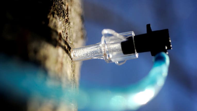 Sap runs into a line at Maple Hill Sugar House on Tuesday, February 2, 2016. (Photo by Derek Davis/Portland Portland Press Herald via Getty Images)