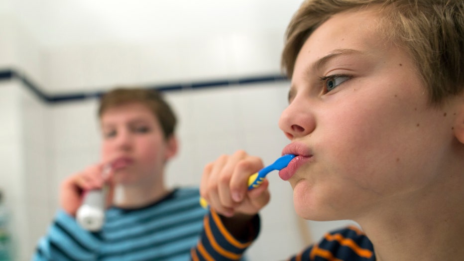 Boys brushing their teeth (Photo by Thomas Trutschel/Photothek via Getty Images)