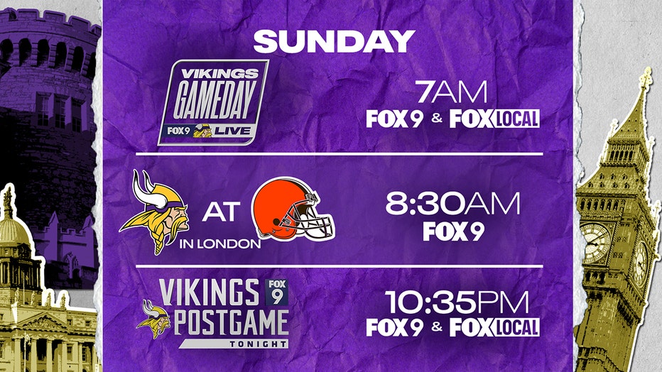 LONDON (FOX 9) - The Minnesota Vikings are playing their second international game in as many weeks on Sunday — and you can watch the game on FOX 9.