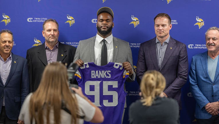 The Minnesota Vikings introduce their first-round draft pick, Caleb Banks, University of Florida defensive lineman, at the TCO Performance Center during a press conference at Eagan, Minn. on Friday, April 24, 2026. (Getty Images)
