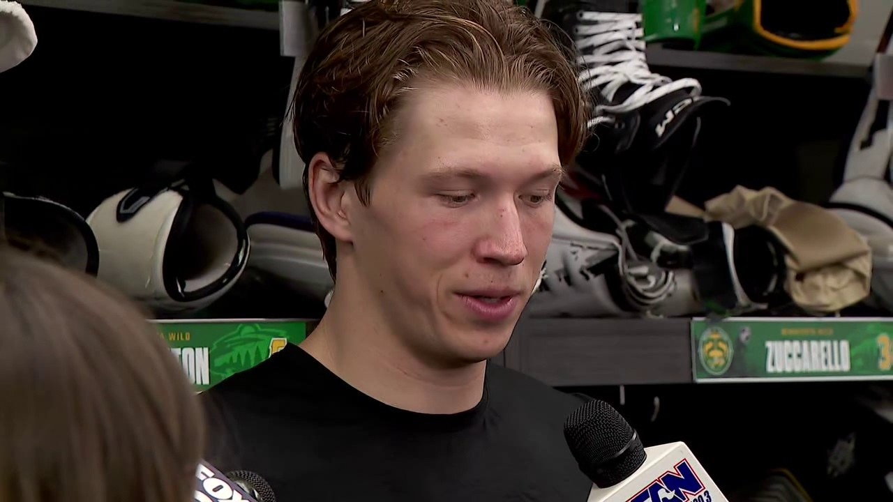 The Minnesota Wild beat the Vancouver Canucks 5-2 Thursday night at Grand Casino Arena to clinch a spot in the Stanley Cup Playoffs for the fifth time in the last six seasons. Wild goalie Filip Gustavsson and forward Matt Boldy spoke from the locker room after the game. Boldy had two goals on the night.