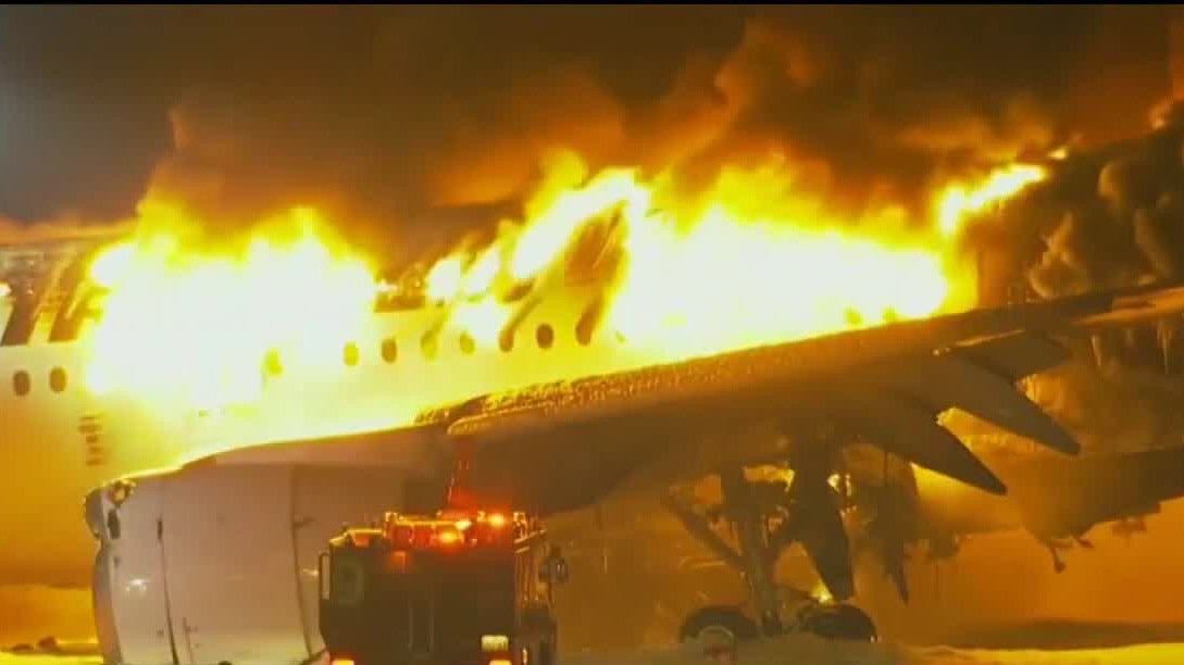 A passenger plane collided with a Japanese coast guard aircraft and burst into flames on the runway of Tokyo?s Haneda Airport on Tuesday, officials said.