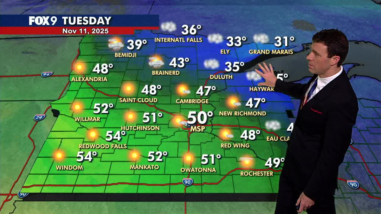 Expect a much warmer, brighter, and breezier Veteran's Day, with highs ranging from the 30s in the north to the 40s and 50s across the rest of the state. FOX 9 meteorologist Cody Matz has the full forecast.