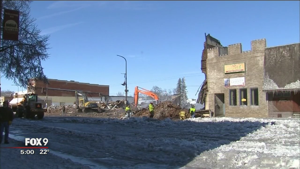 At least five businesses were destroyed and several others were damaged after an explosion sparked a fire in a downtown Madelia, Minn. overnight.