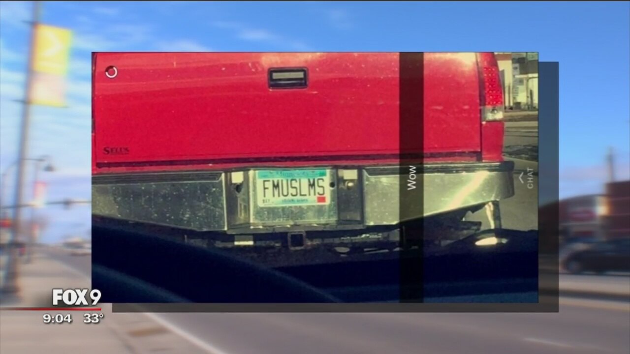 The plates, which read 'FMUSLMS' have received condemnation from many, including Gov. Dayton.