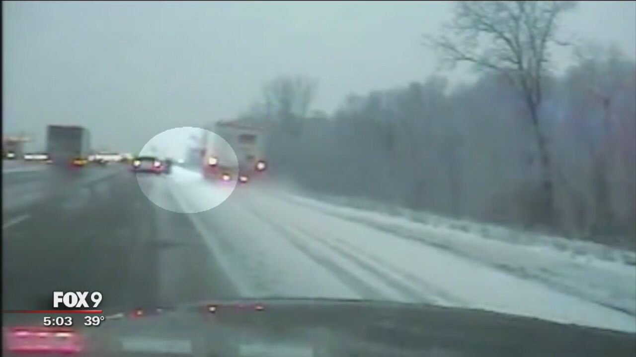 Close call between Crystal, Minn. police officer, truck on I-94