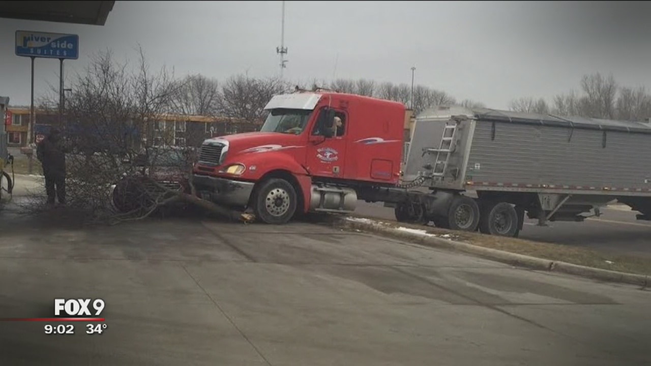 Dog drives semi into tree, parked car at Mankato Kwik Trip