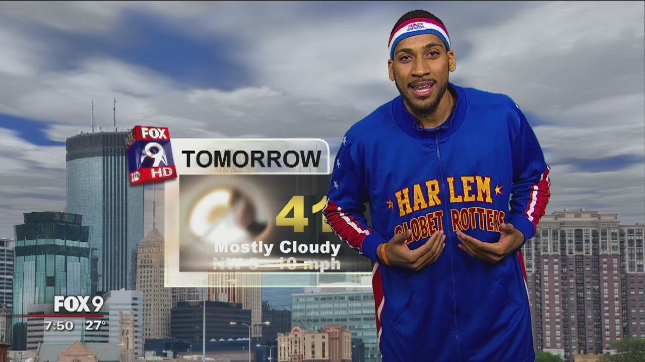 Zeus McClurkin of the Harlem Globetrotters stopped by the Fox 9 studio Saturday morning to help Chief Meteorologist do the weather.