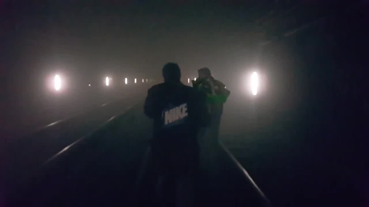 This footage shows passengers walking along the tracks as they evacuate the Brussels Metro. Credit: Twitter/Quentin Genaille