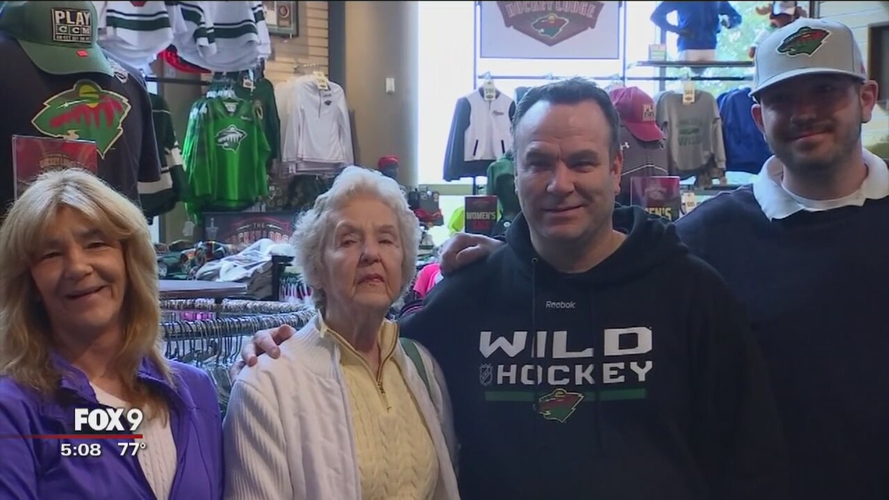Rob Olson went shopping for Wild playoff gear with Coach Torchetti?s mom.
