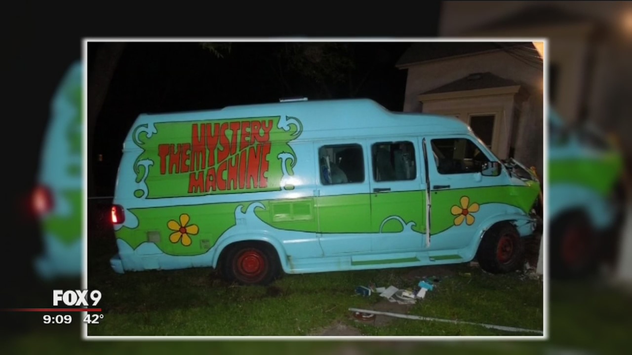 A stolen van painted to look like the 'Mystery Machine' from the Scooby-Doo cartoons was found after it crashed into a St. Paul, Minn. home Friday morning.