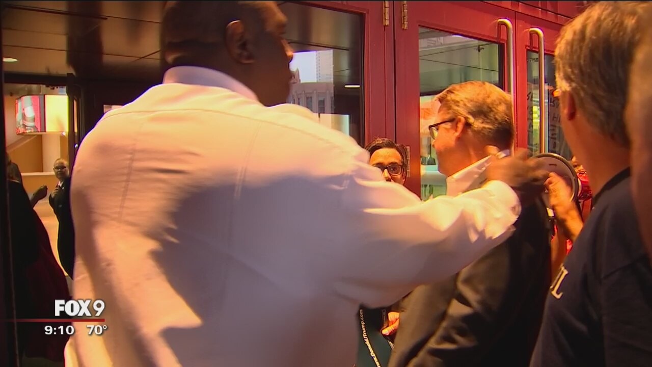 Protestors clashed with Donald Trump supporters outside his fundraiser at the Minneapolis Convention Center Friday night.