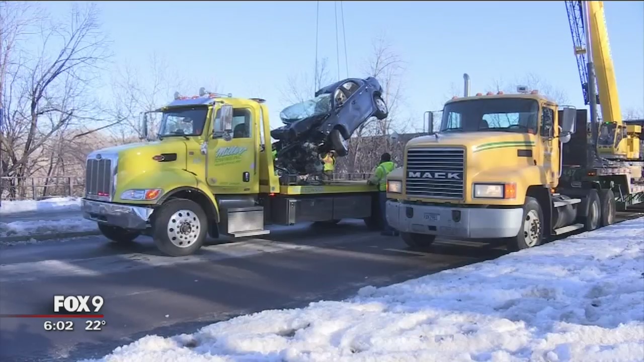 A person was rescued after their car went down a river embankment in Minneapolis on Tuesday.