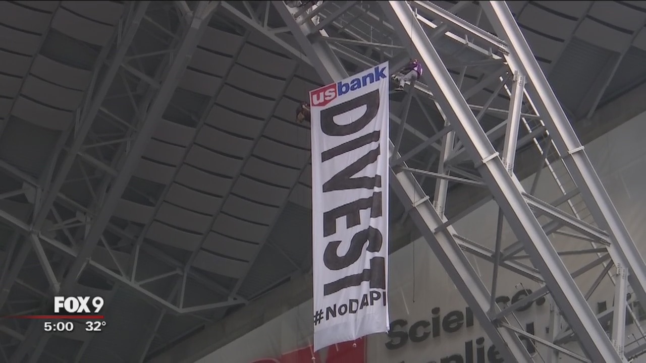The three protesters arrested after hanging from the rafters in US Bank Stadium during a Vikings game have been released from jail. The protesters were displaying their opposition to the Dakota Access Pipeline.