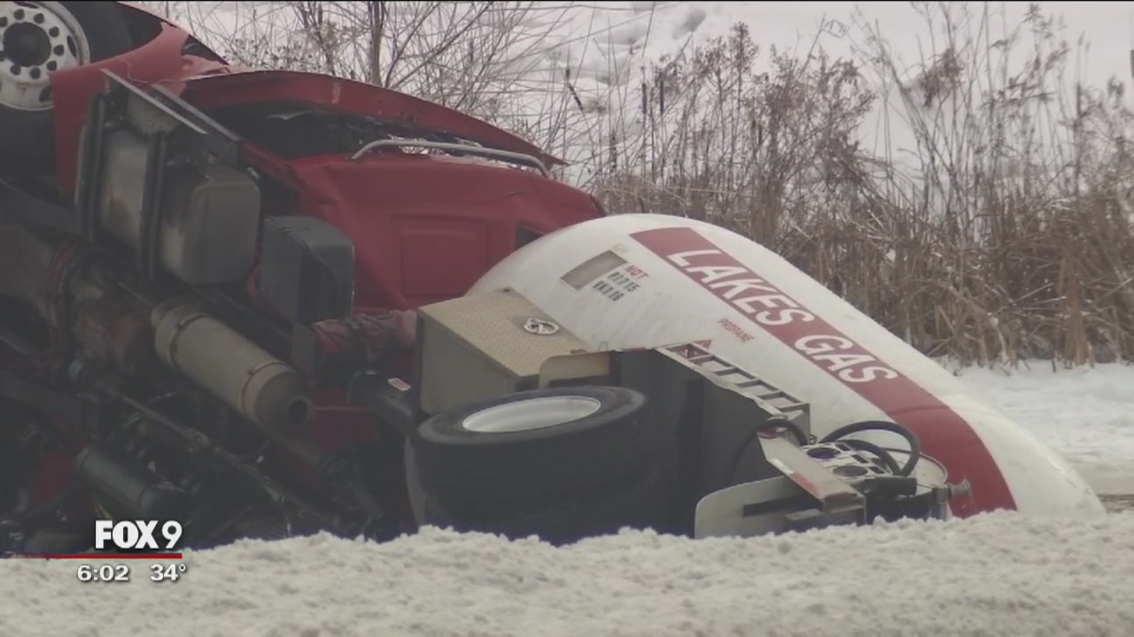 Propane truck plunges into pond in Lakeville, Minn.