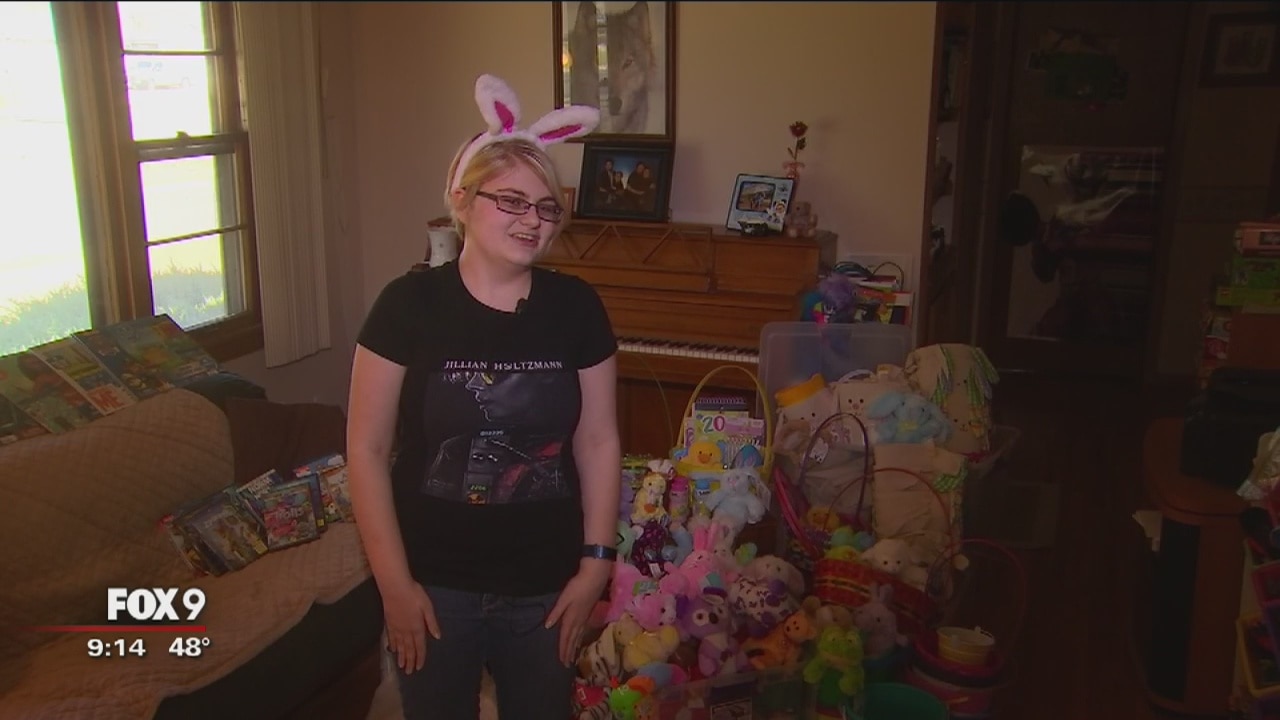 A teen creates Easter baskets for children staying at Gillette Children's Specialty Healthcare.