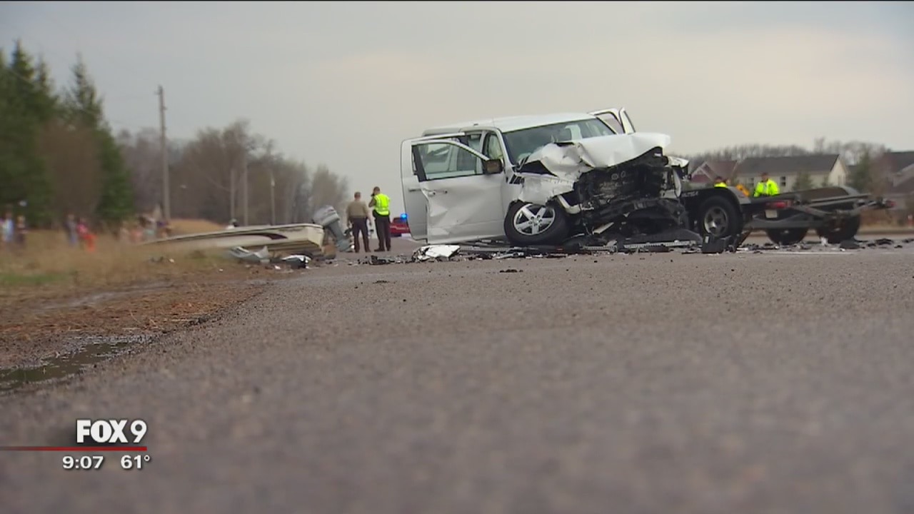 A horrific car accident near Prior Lake, Minn., left one dead and four injured Sunday afternoon, with an SUV partially submerged in the lake, according to a release.
