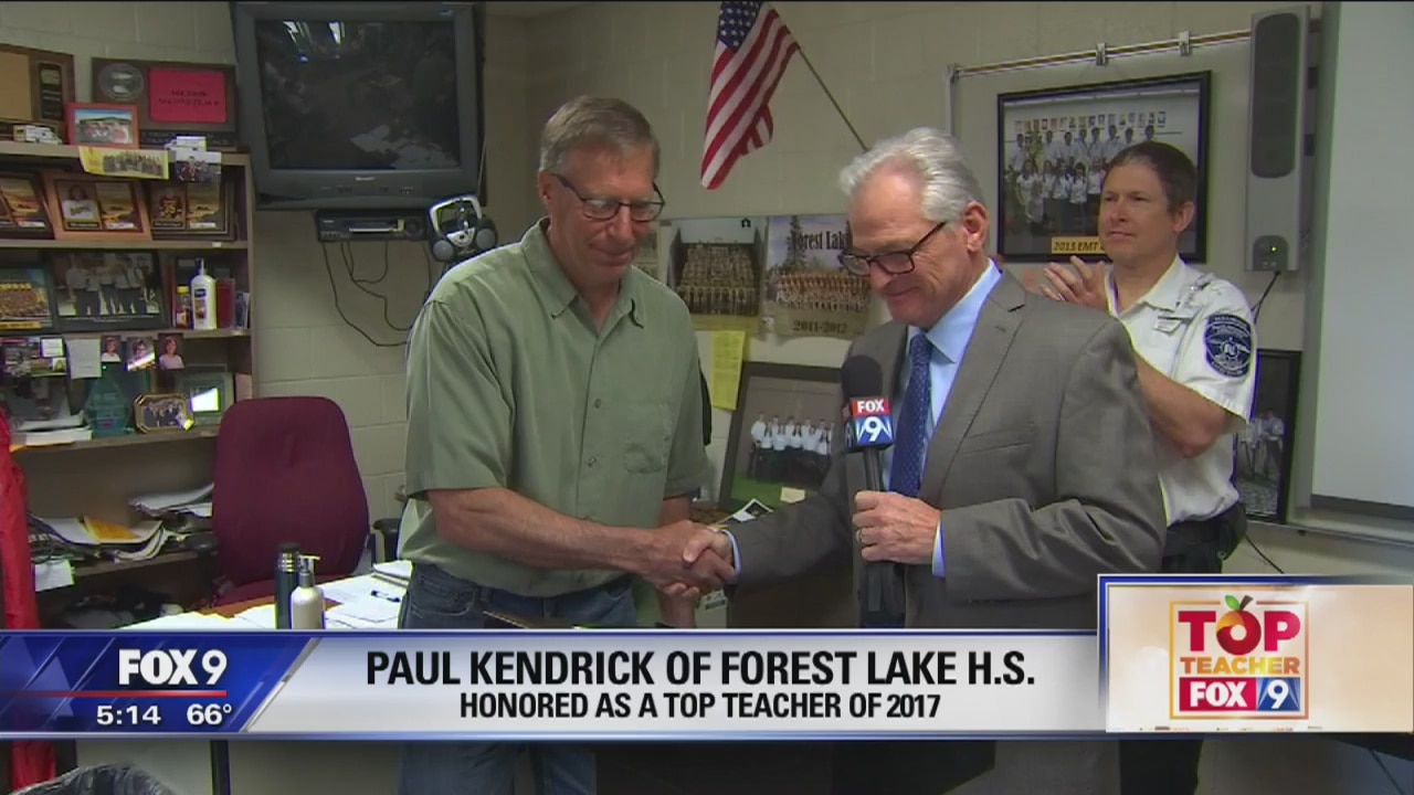 Paul Kendrick of Forest Lake High School is recognized by Fox 9 as a top teacher of 2017.