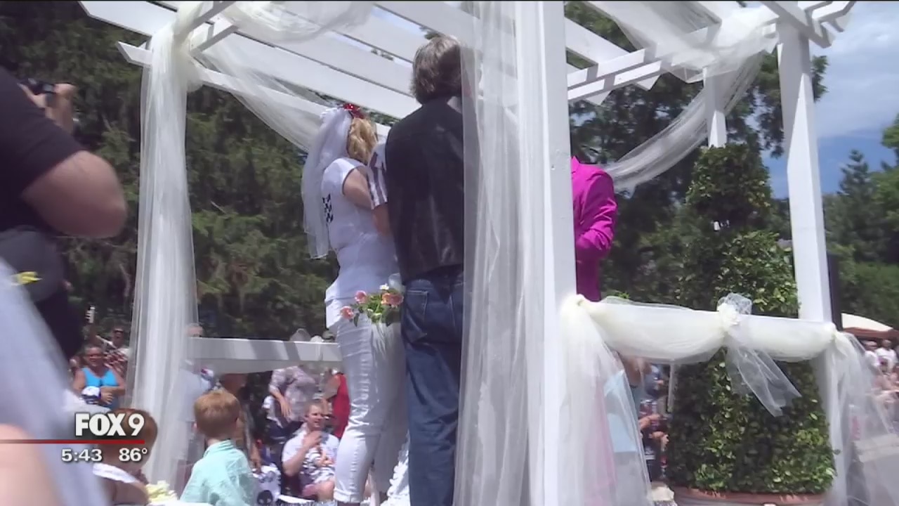 Several couples got married on the 'Love Float' during the annual 4th of July parade in Afton, Minnesota.