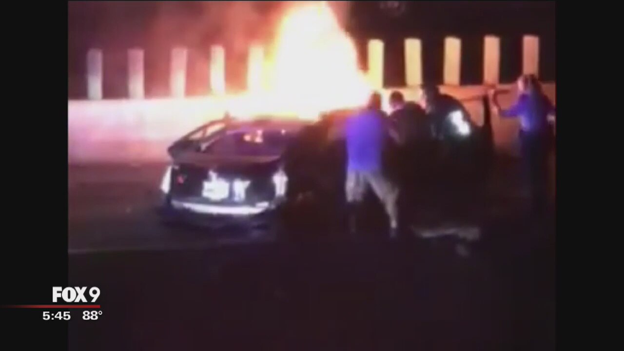 The officers who pulled two people from a burning car on I-94 last Wednesday said they only had seconds to act.