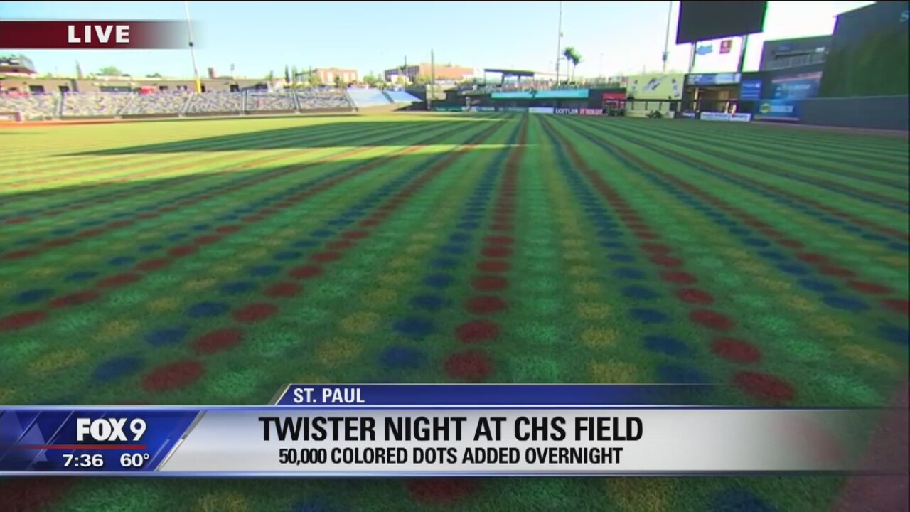 Baseball fans and St. Paul Saints players will head down to the field after the game Tuesday night to partake in a giant game of Twister.