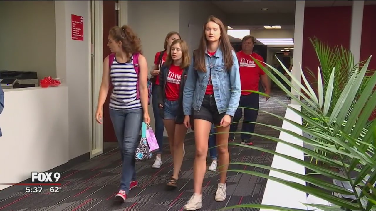 Students at Minnehaha Academy?s Upper School headed back to school Tuesday at their new home in Mendota Heights, Minnesota after an explosion destroyed part of their campus in Minneapolis last month.