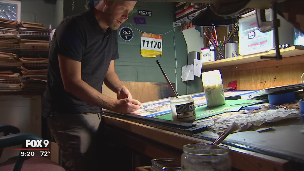 He might be a school teacher in Minneapolis, but his art features a lot of green and gold.