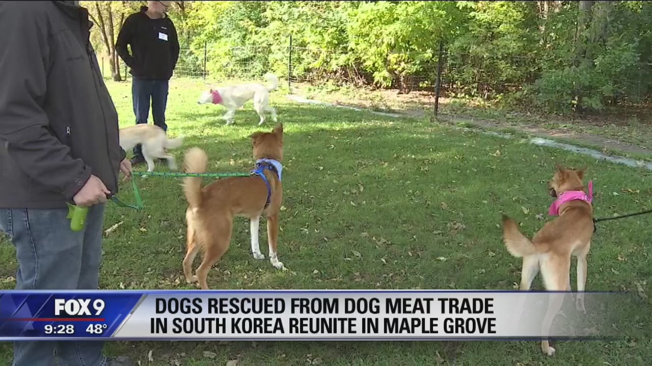 After they were rescued from the Korean meat trade, a group of dogs reunited at a Minnesota dog park.